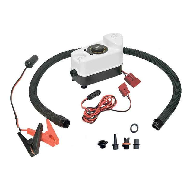 The Bravo Scorprega Electric Pump is an extremely easy way to inflate your dinghy, SUP, kayak or any other inflatable that requires a PSI up to 18. This pump is supplied with cables for connecting to a cigarette socket, or directly into a 12V battery via crocodile clips.