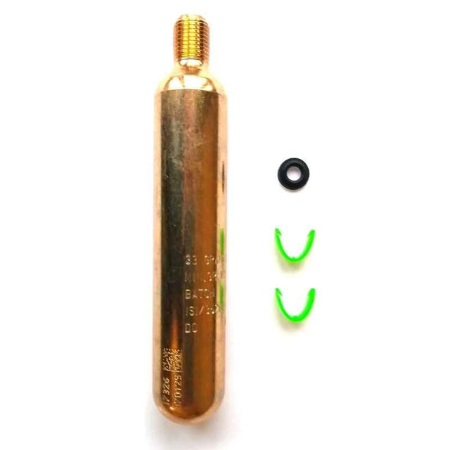 Gas bottle and clips for manual lifejackets with United Moulders/Halkey Roberts firing mechanisms.