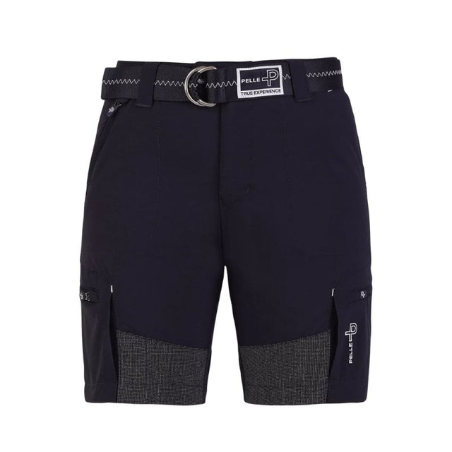 Practical features include a Pelle P plastic horn button at the waistband, bellowed front pockets with decorative zig-zag stitching, secure zippered leg pockets, and velcro-back pockets to keep essentials safe while underway. Finished with subtle Pelle P logo embroidery and supplied with a matching belt, these shorts combine functionality and style for life on the water.