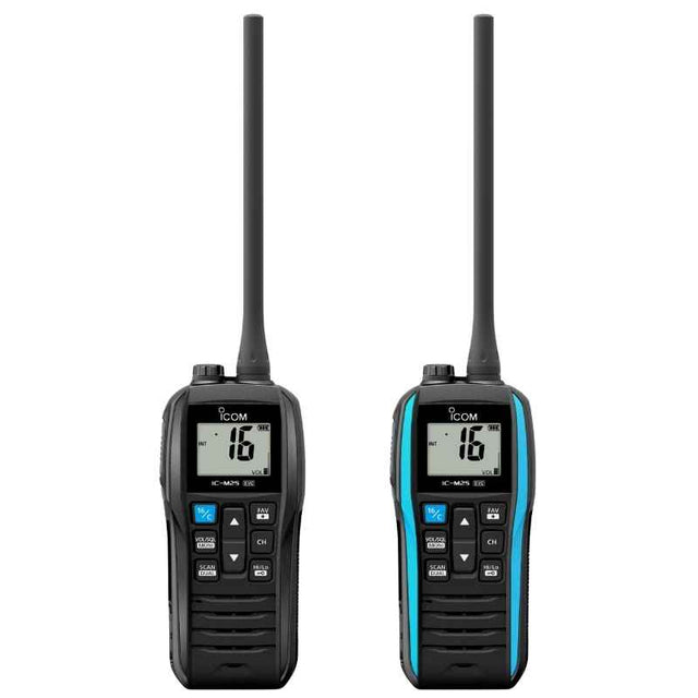 IC-M25 EVO Buoyant Marine VHF Radio - Blue is backordered and will ship as soon as it is back in stock.